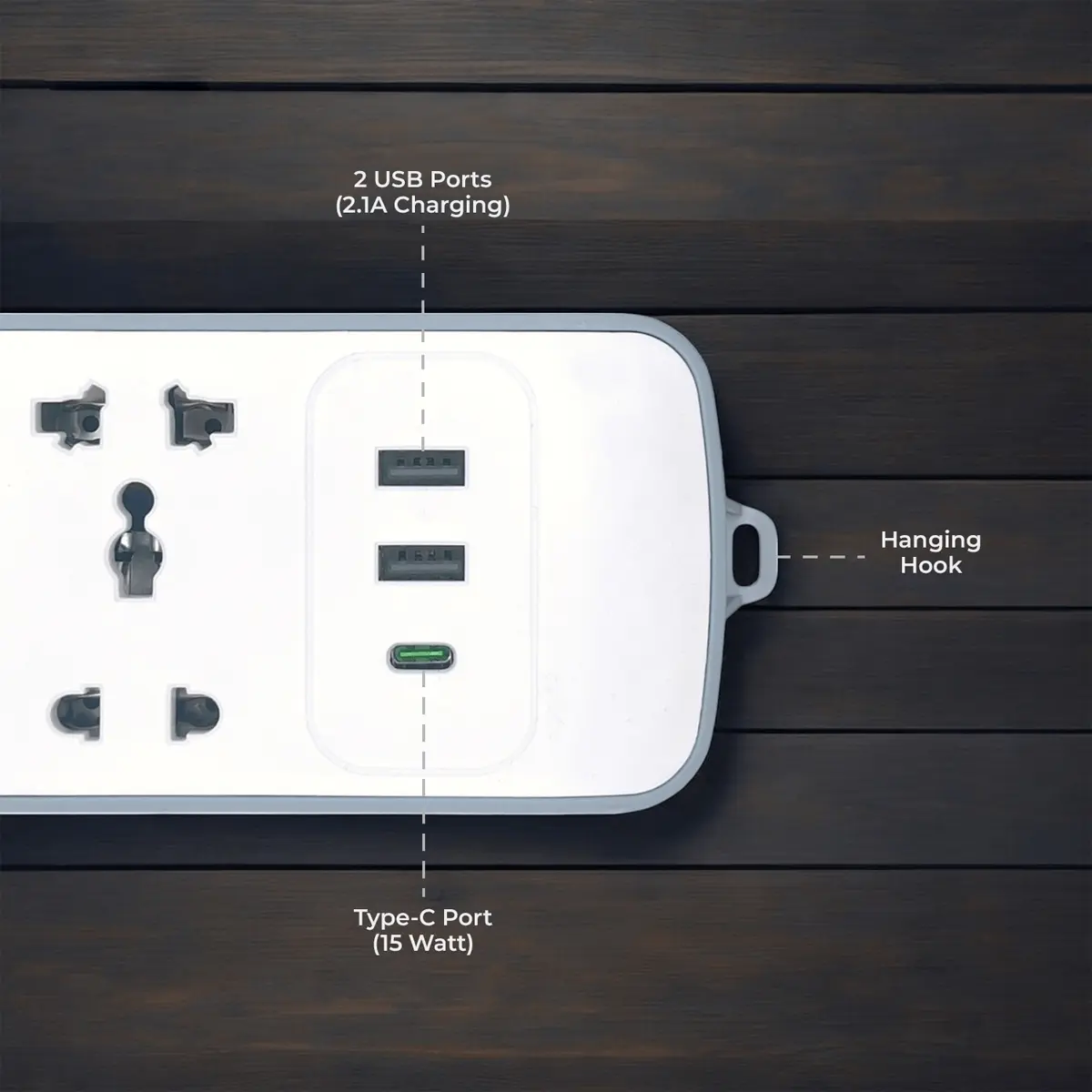 Includes 2 USB ports (2.1A) and 1 Type-C port (12W) for fast and efficient charging of your devices.